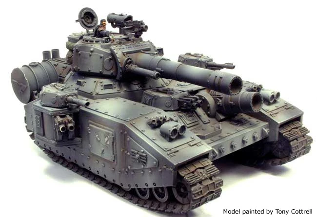 - Armaments: turret Mega Battle Cannon, coaxial Autocannon, 2 sponson turret Lascannon, hull Demolisher Cannon, 2 sponson twin heavy bolter, 1 hull twin heavy bolter, 1 pintle mount